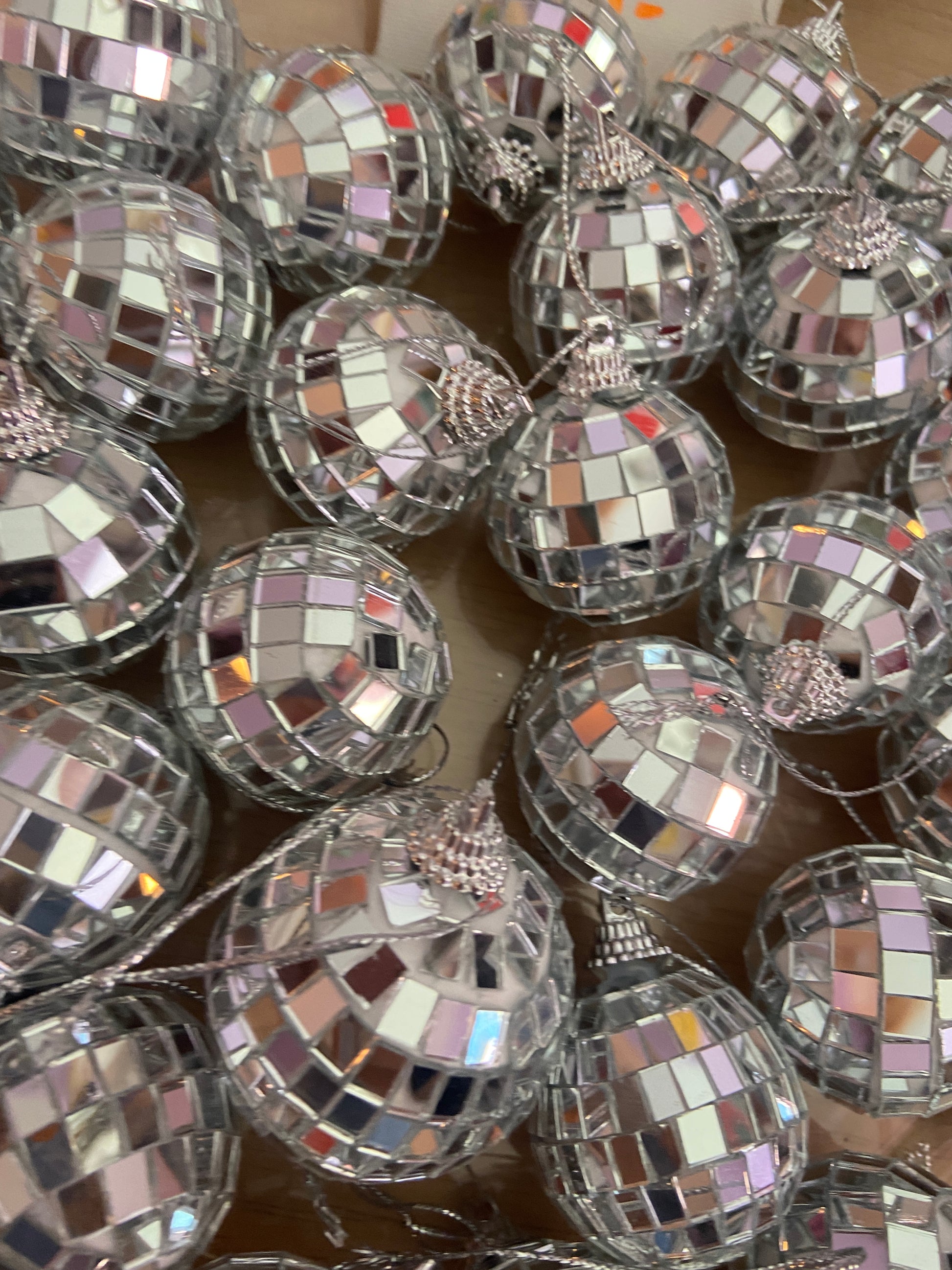 A portable party, these mini-disco balls are perfect for your car mirror, bathroom cupboard, or workspace. Ready to boogy at anytime. They are made with real glass and have individualities due to the handmade element. They will last for years, and if any glue weakens over the years the glass squares can be put back on very easily. The perfect little stocking filler or extra spice to a gift.
