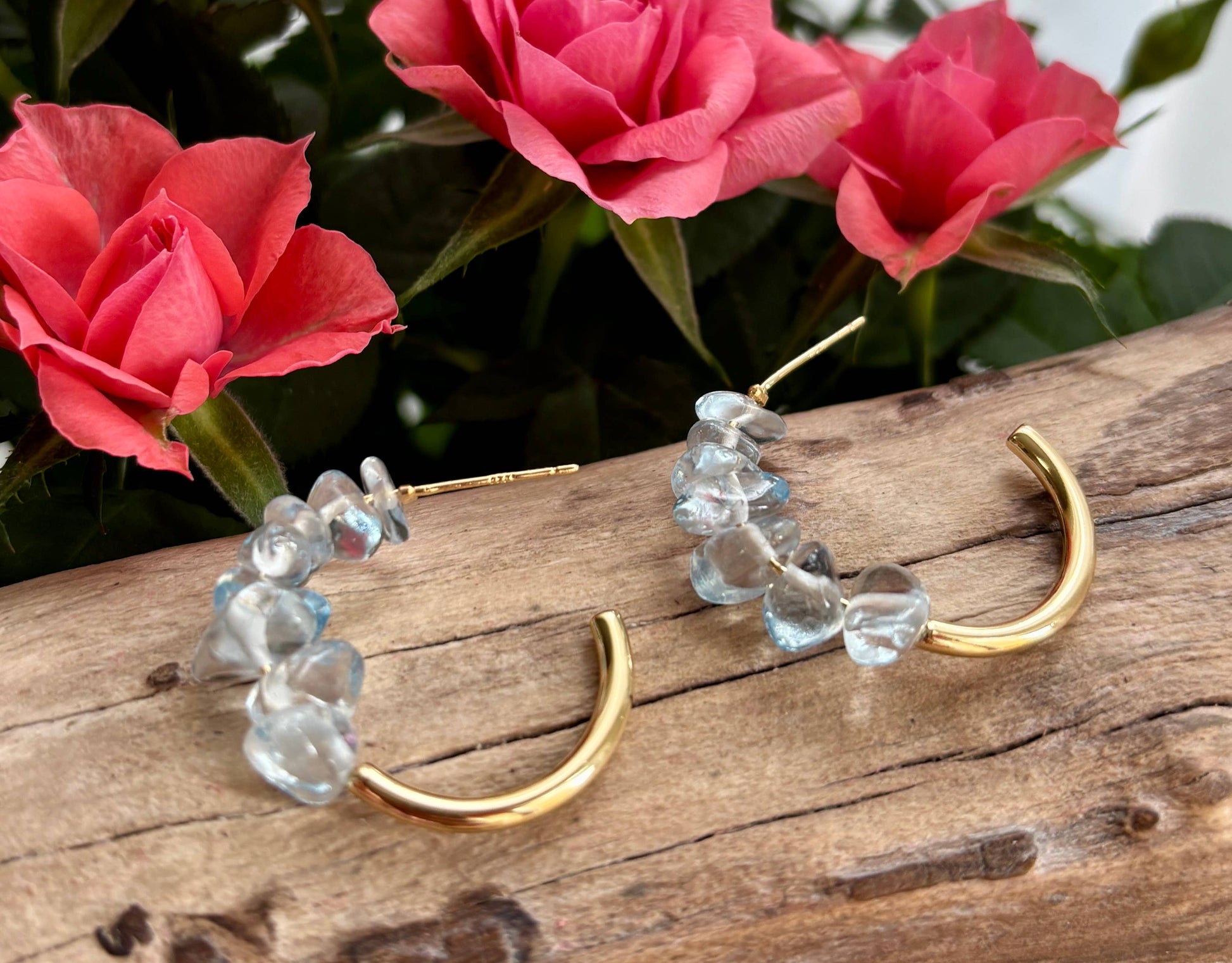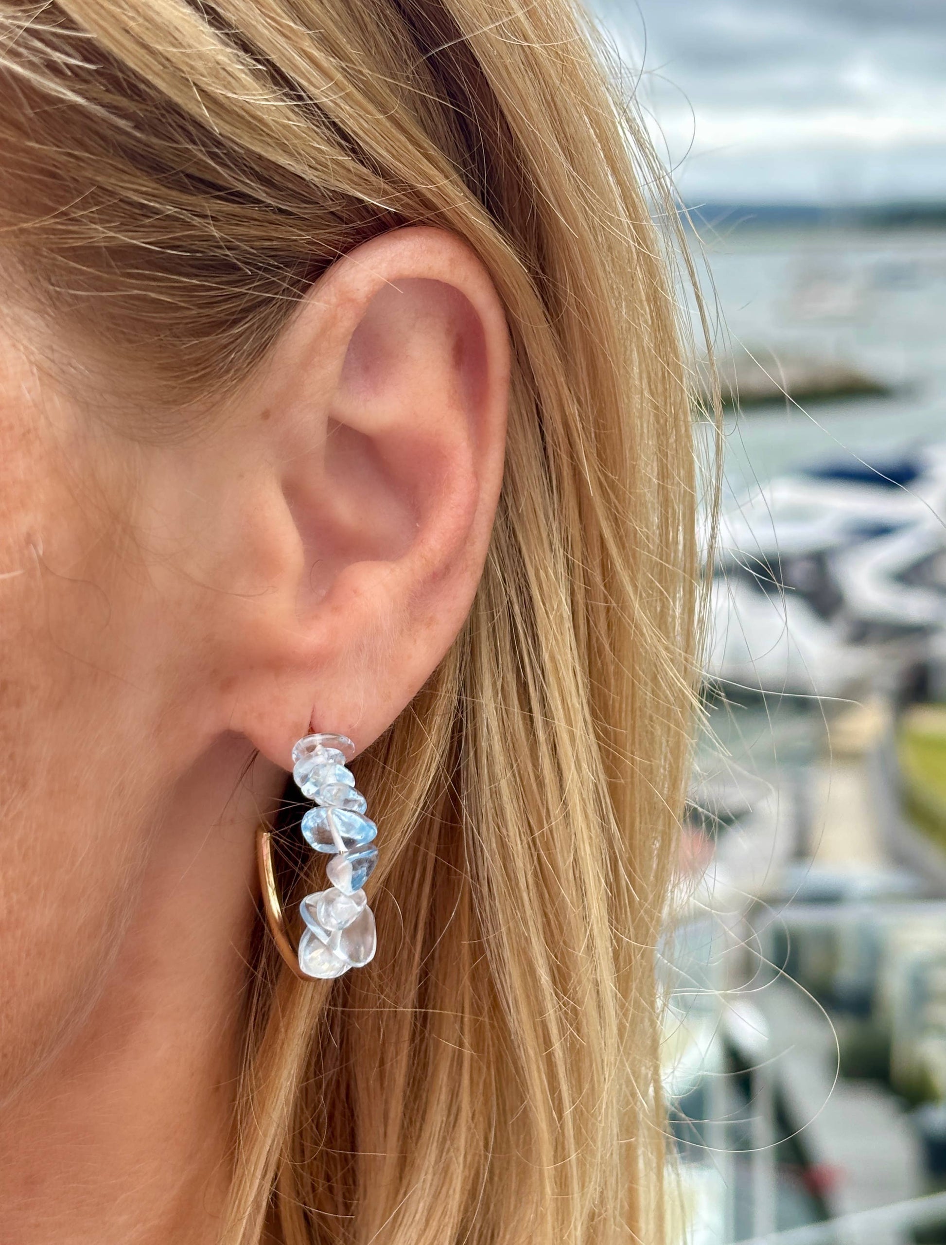 14ct Gold Plated Blue Quartz Chips Hoop Earrings