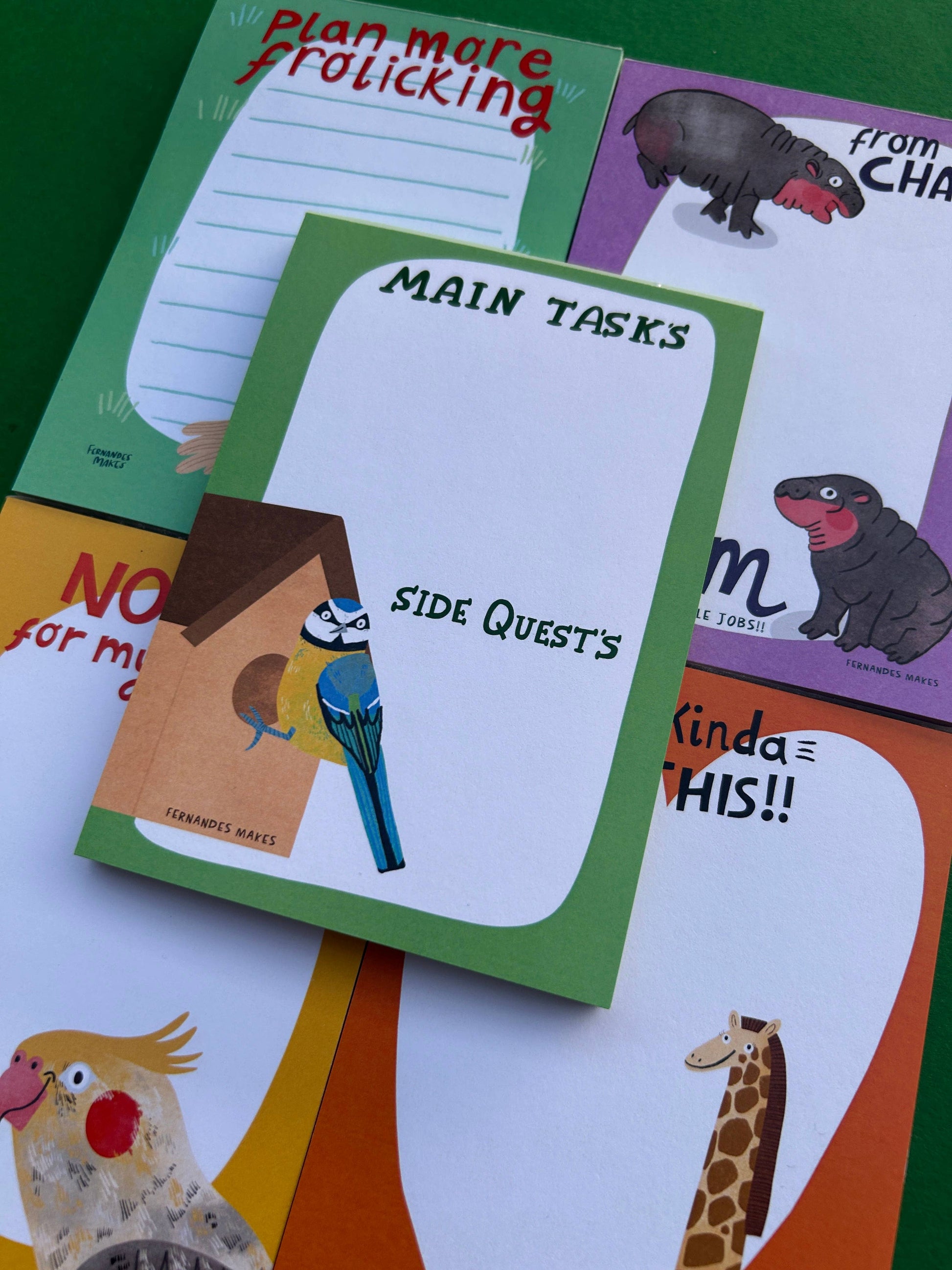 Blue Tit Main Tasks + Side Quests A6 Jotter / Notepad / Pad