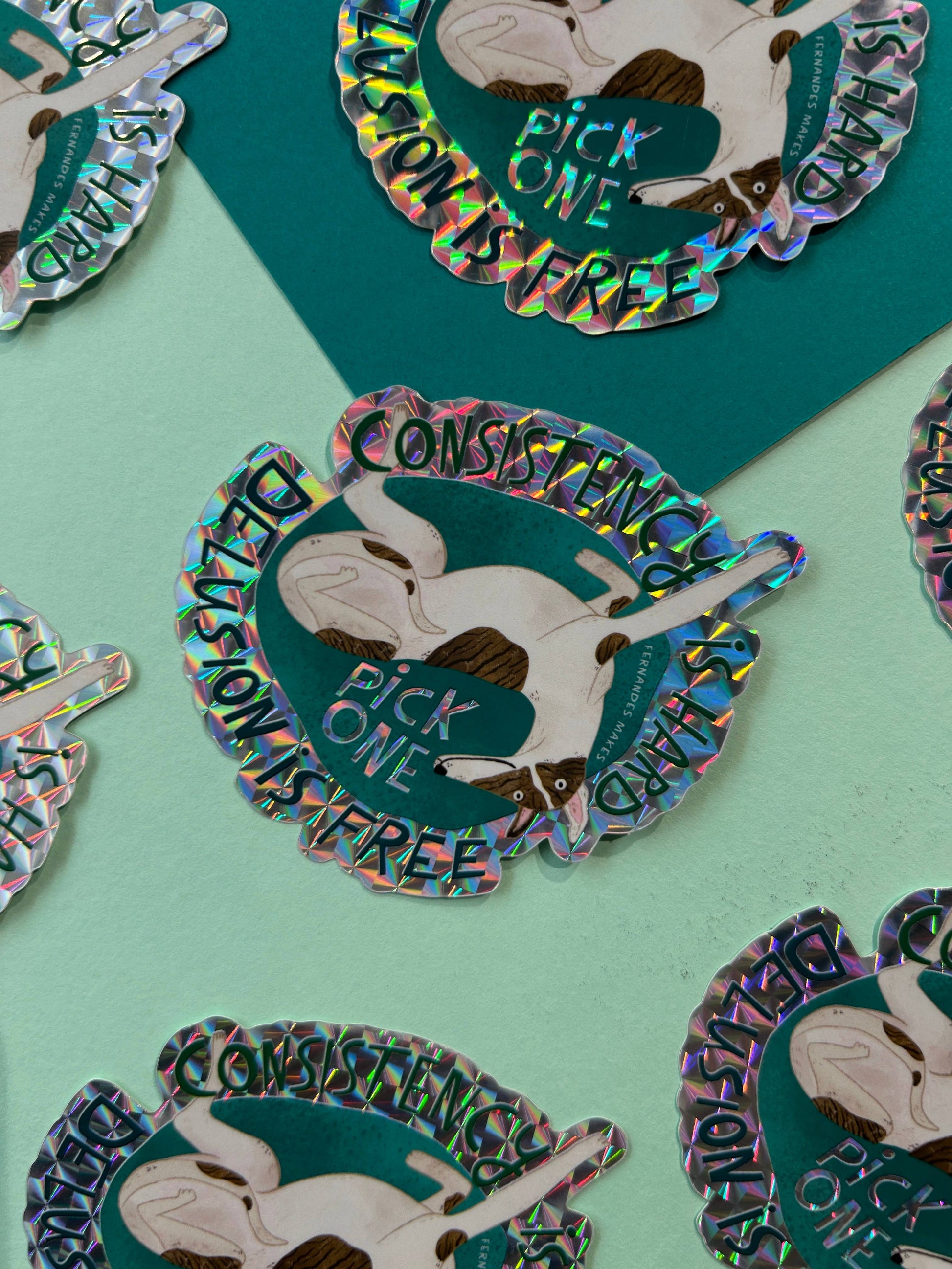 Consistency Is Hard Delusion Is Free Prismatic Vinyl Sticker
