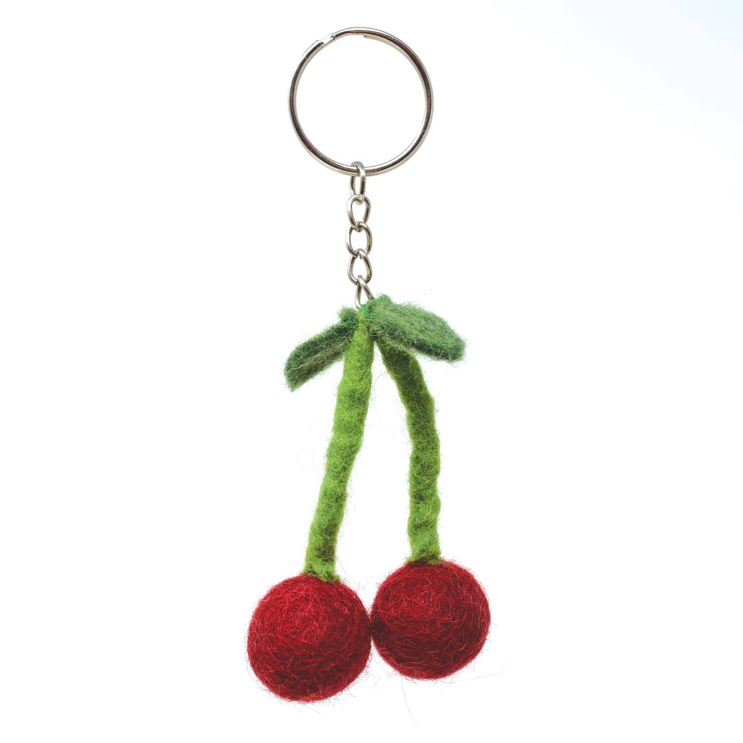 Introducing our adorable fair trade handmade pure wool felt cherries keyring!