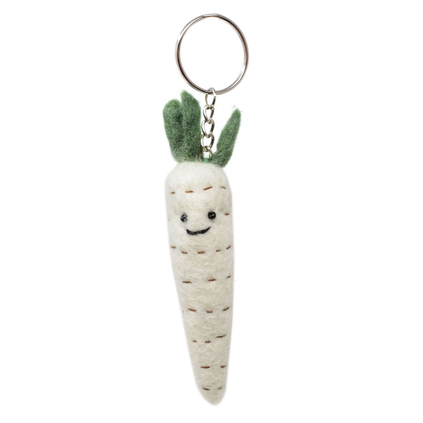 Introducing our adorable fair trade handmade pure wool felt parsnip keyring!