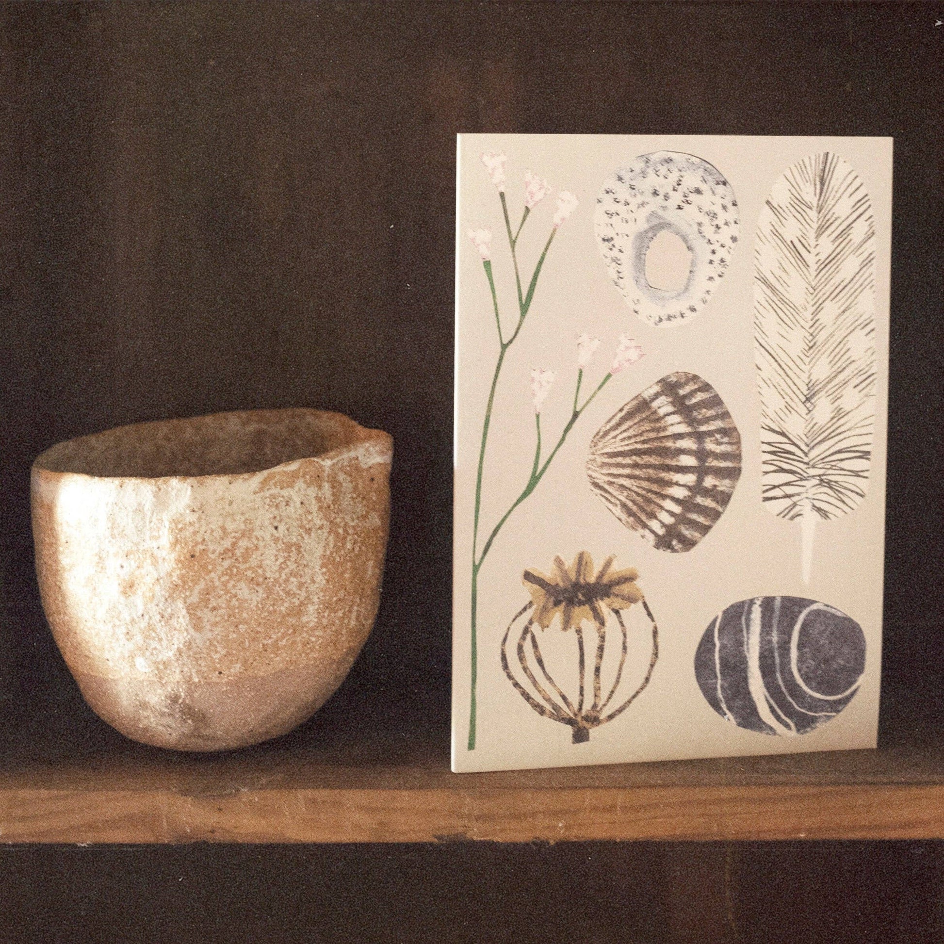 A paper cut illustration of some small, beautiful pieces of nature: inspired by pieces from Kettles Yard, Cambridge and part of an official collaboration.
