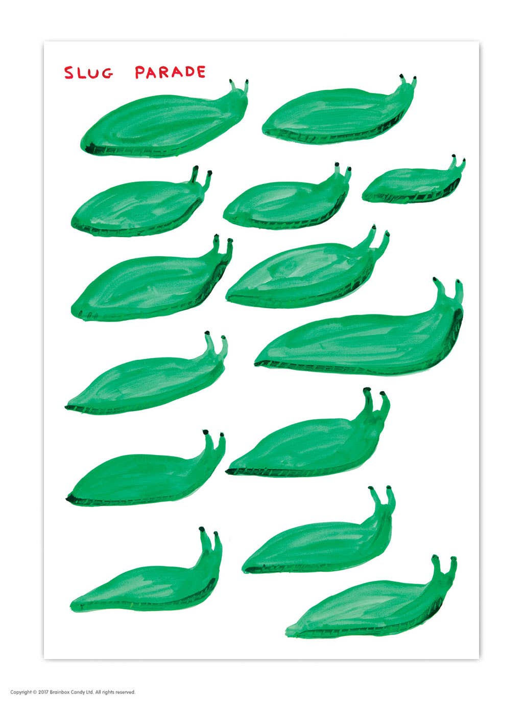 Funny A6 Art Postcard By David Shrigley - Slug Parade