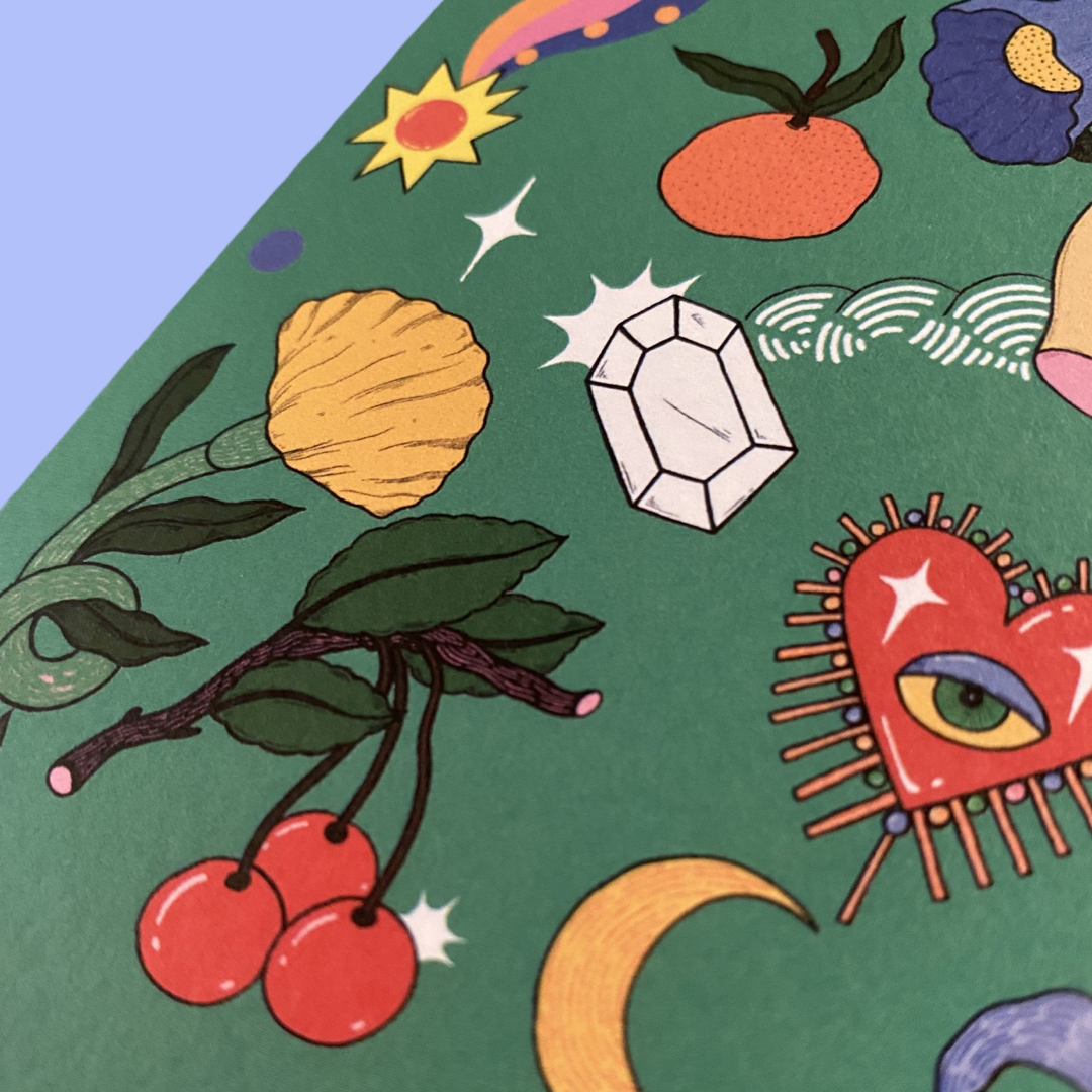 Printed in the UK on GF SMITH Tinteretto Gesso 300gsm FSC certified paper, this high quality paper has a slightly hammered texture giving depth and vibrancy to the illustrated image.