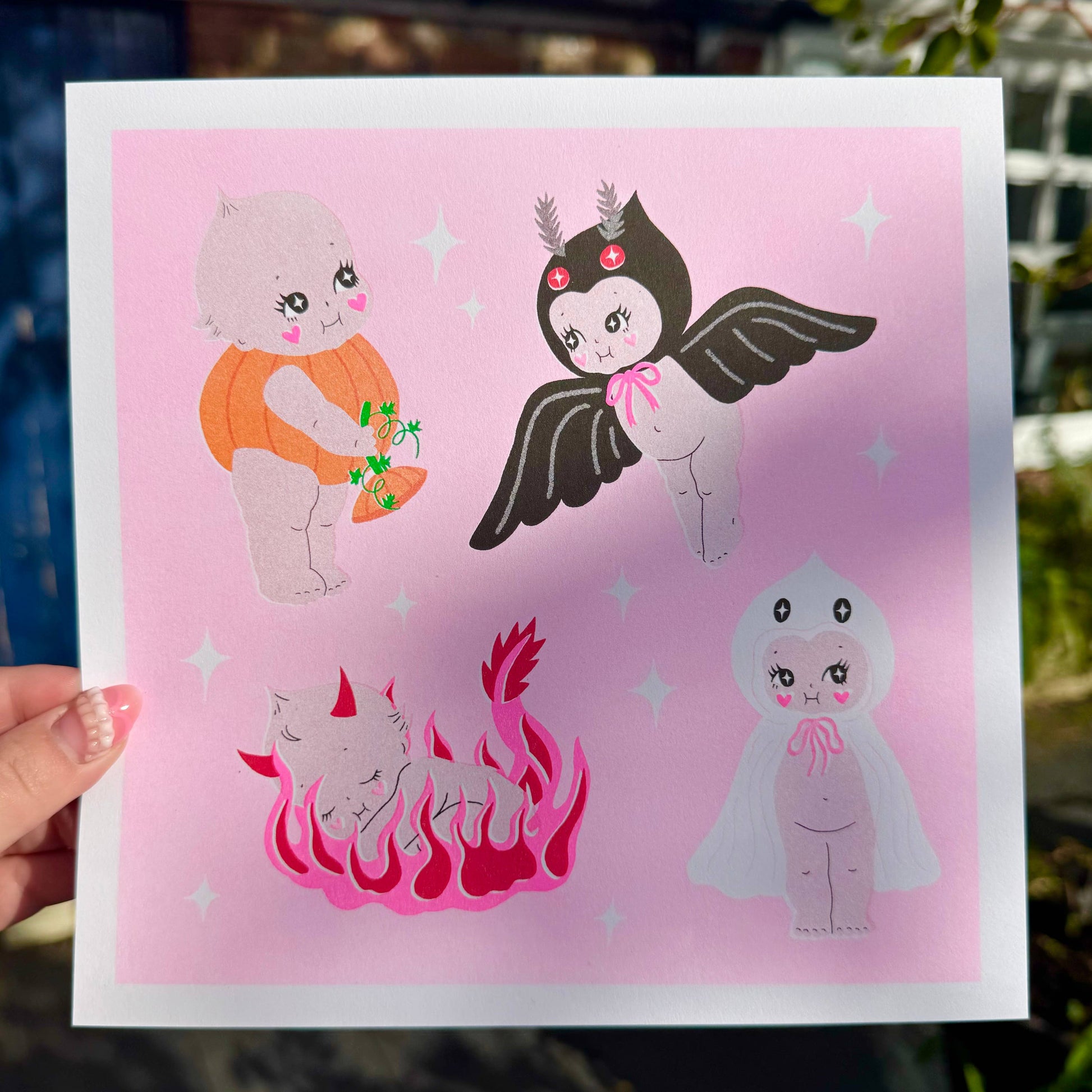 Halloween Kewpies 21 x 21cm Square Risograph Print