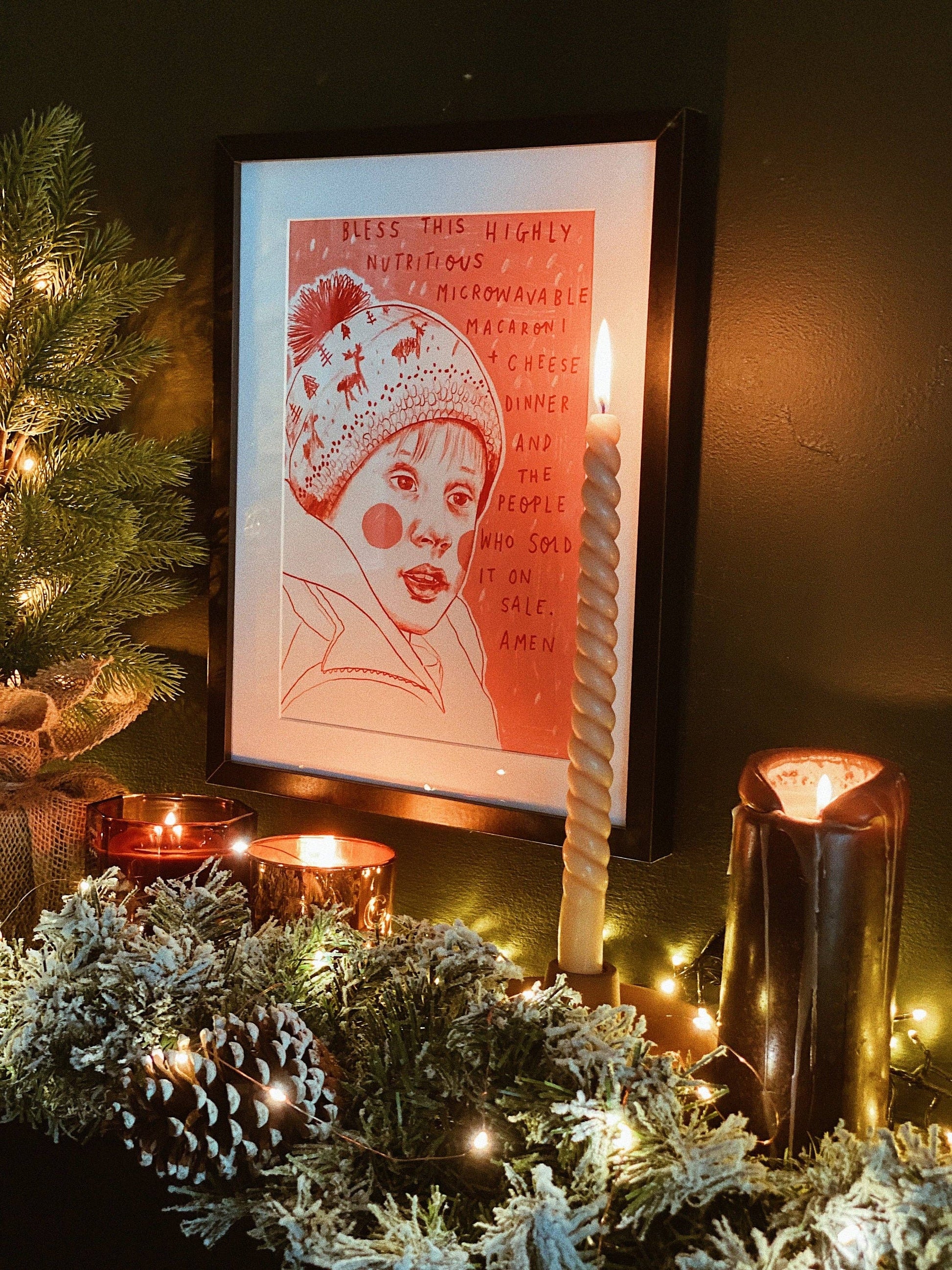 A4 sized, professionally printed onto 400gsm silky warm-white paper. The print is also soft-touch laminated on the front, which gives the card a velvety feel whilst simultaneously adding a little more protection to the image in case you use washi tape to hang it up! If frames are more your style, I would recommend IKEA for inexpensive A4 size frames (or A3 with a mount board) or charity shops to find more ornate/unique frames.