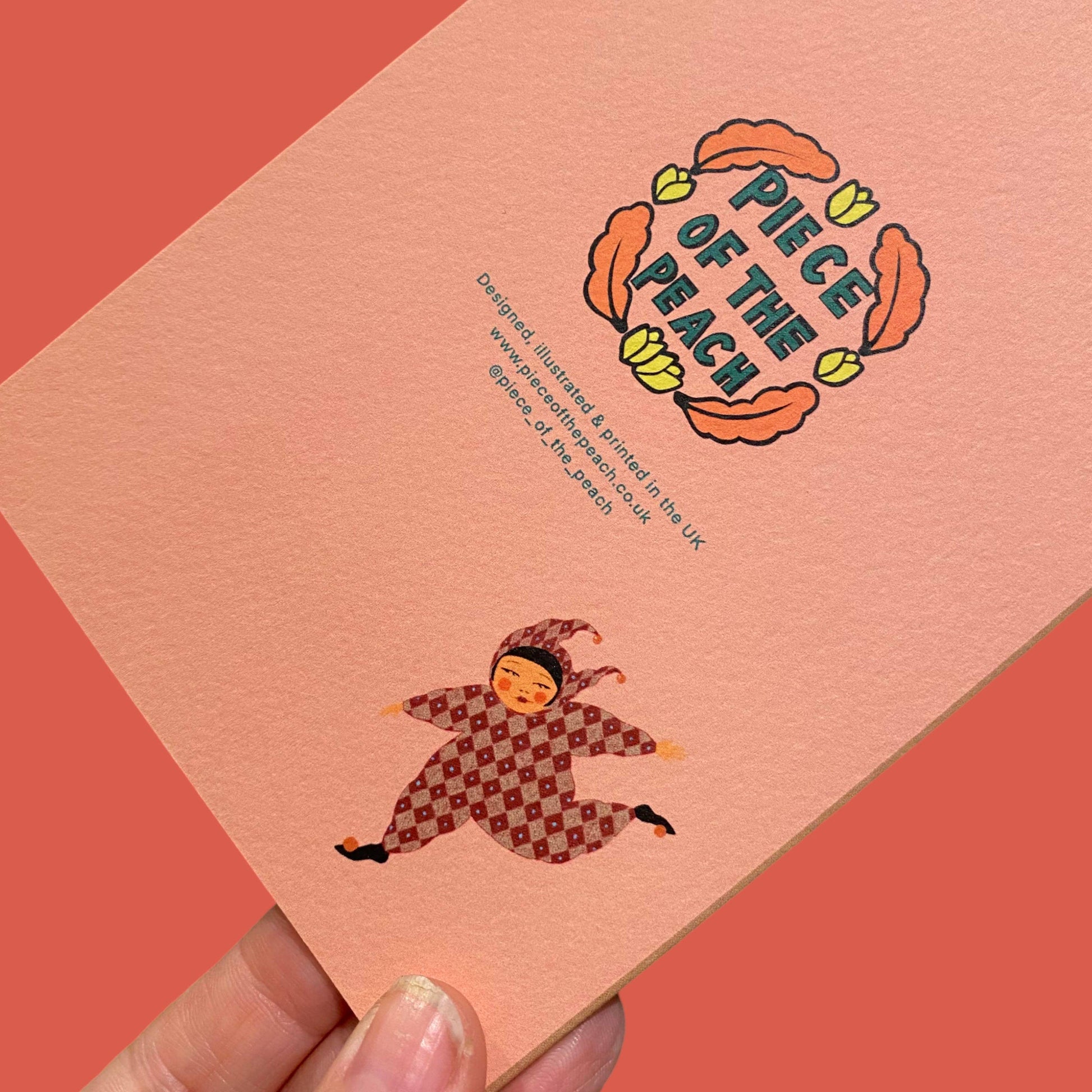Printed in the UK on GF SMITH Tinteretto Gesso 300gsm FSC certified paper, this high quality paper has a slightly hammered texture giving depth and vibrancy to the illustrated image.
