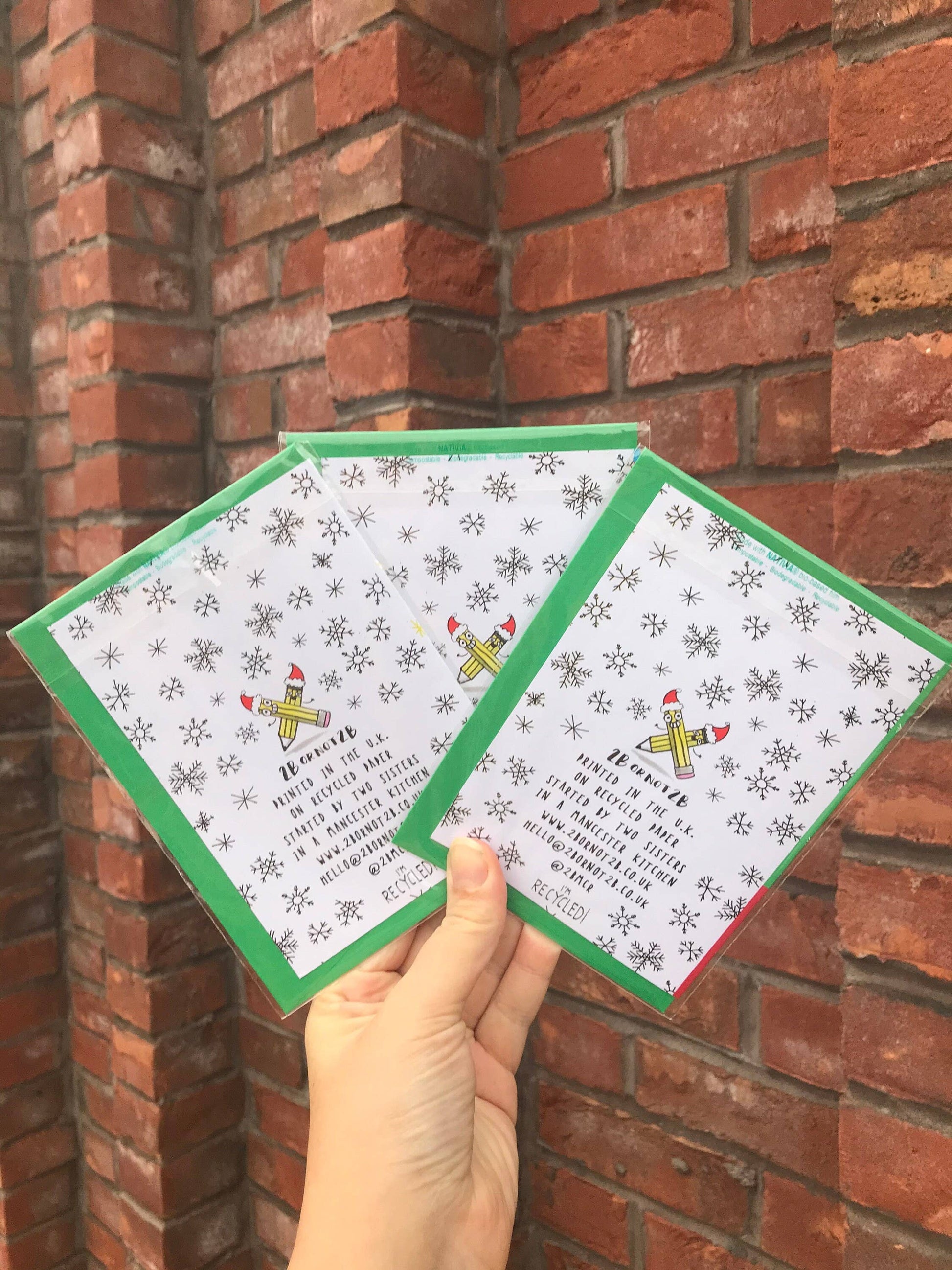 This gorgeous scene was originally hand drawn and coloured in with inks, reproduced in vibrant print on a A6 card. It's a joyous scene almost in the style of an illuminated manuscript. So if your gran is a fan of old fashioned Christmas cards, this is pretty much as olde worlde as you can get! Check out all the tiny details on this one because they're absolutely great
