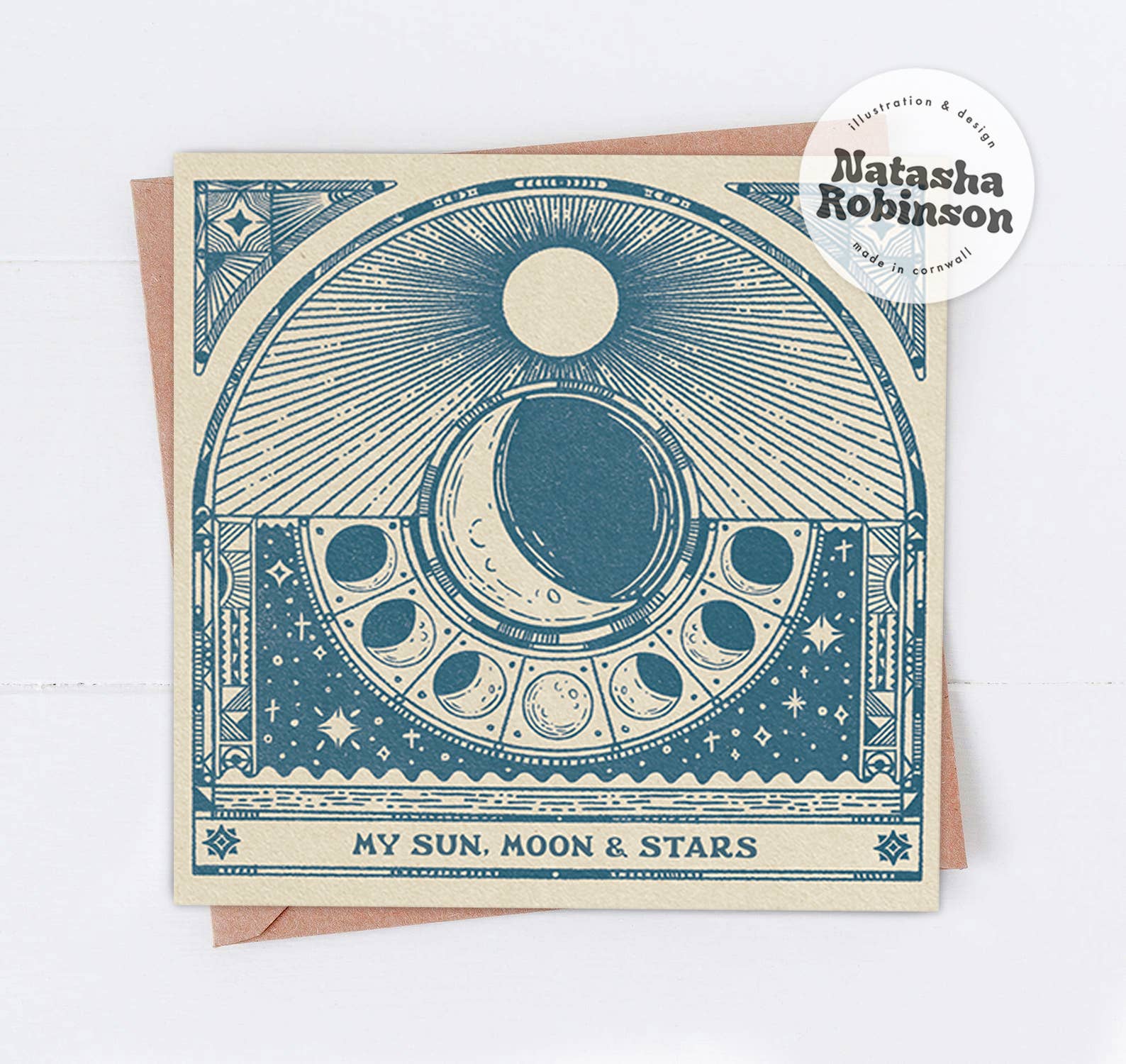 Square greetings card, measuring 148 x 148mm. Featuring an original illustration by illustrator Natasha Robinson. Printed onto 250gsm FSC textured white FSC paper and comes with a brown kraft 100% recycled envelope.