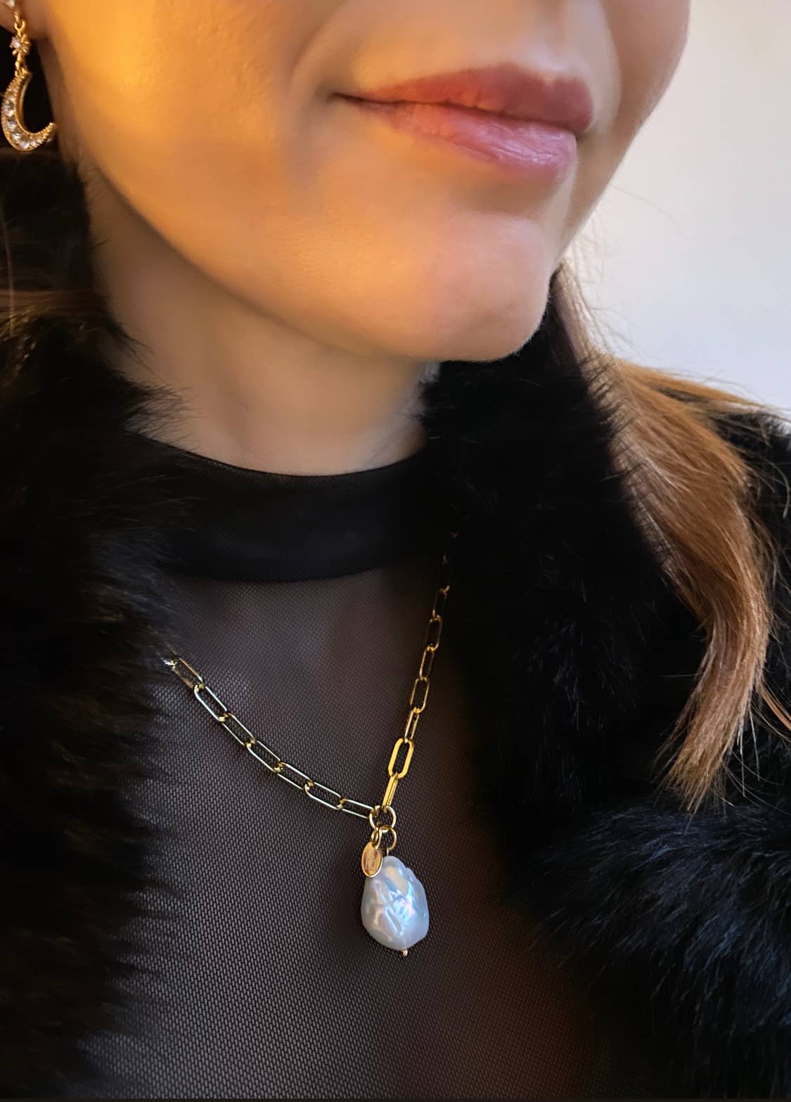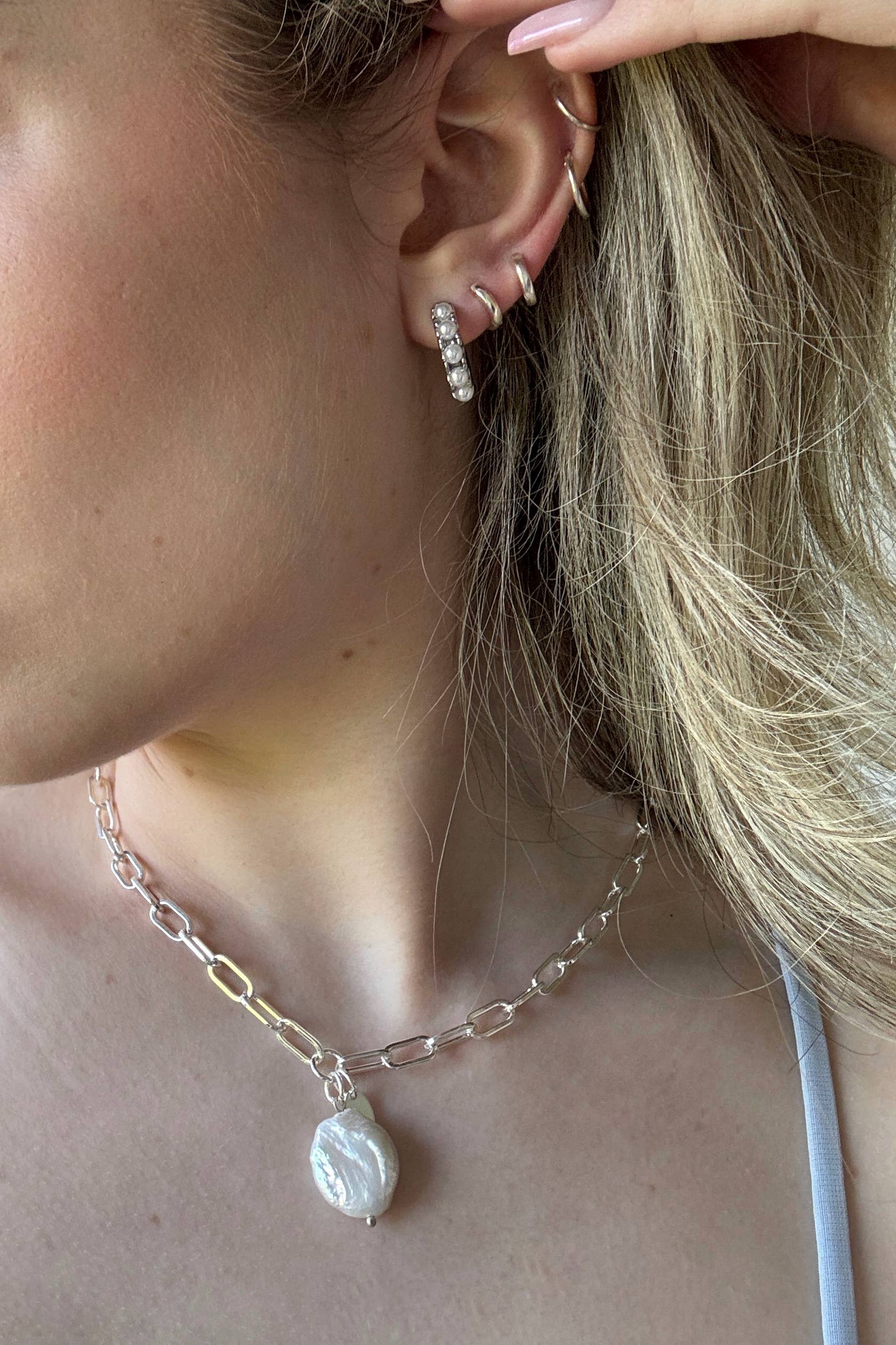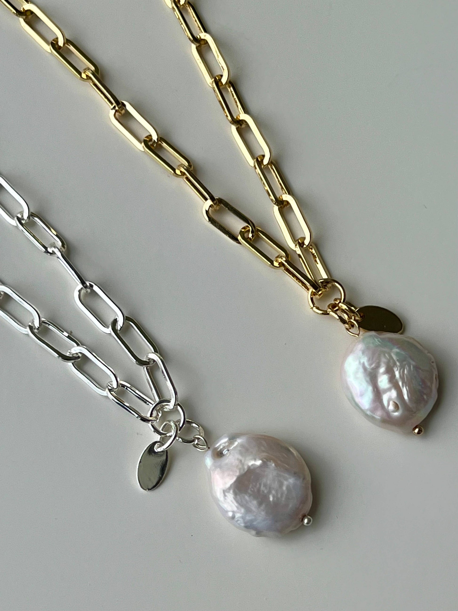 Natural Freshwater Pearl Necklace in Sterling Silver or Gold: Sterling Silver Plated
