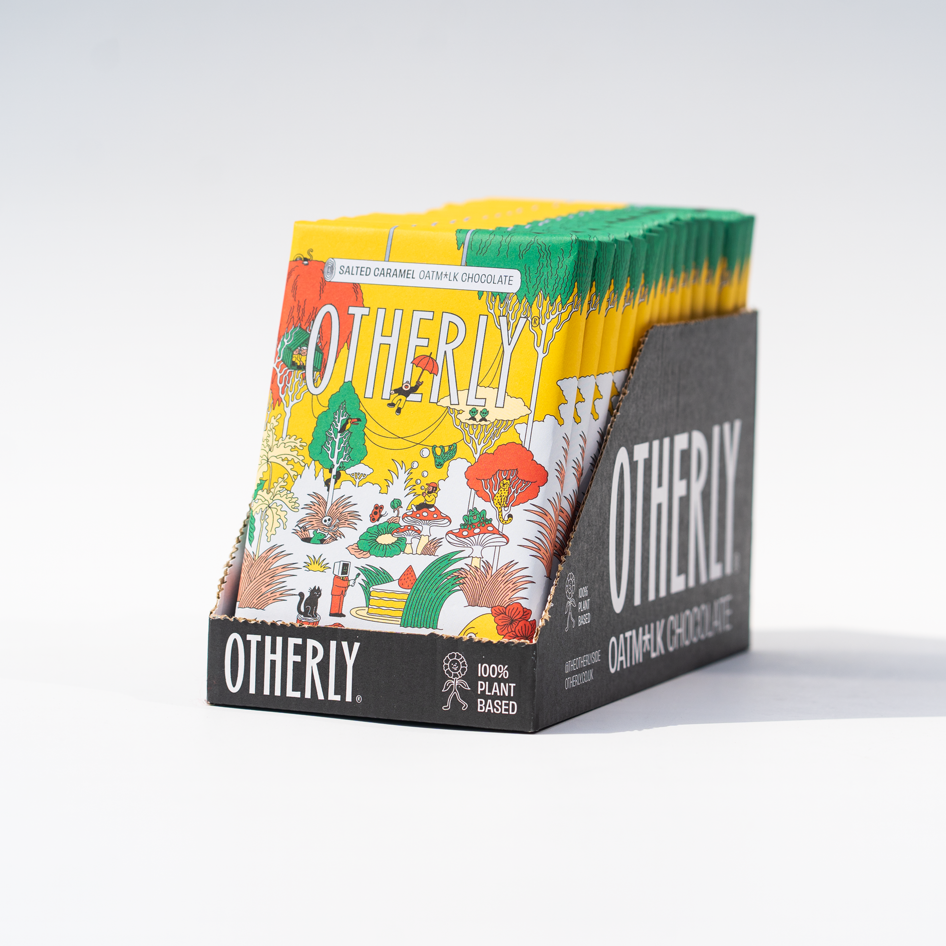 Within the family of plant-based chocolate with 43% cacao content made with fine flavour cocoa beans from Colombia and oat powder, OTHERLY Salted Caramel Oatm*lk features decadent well-defined caramel notes with hints of sea salt that intensify the cereal notes of oats perfectly balanced underlined by chocolate-like tones and creamy texture.