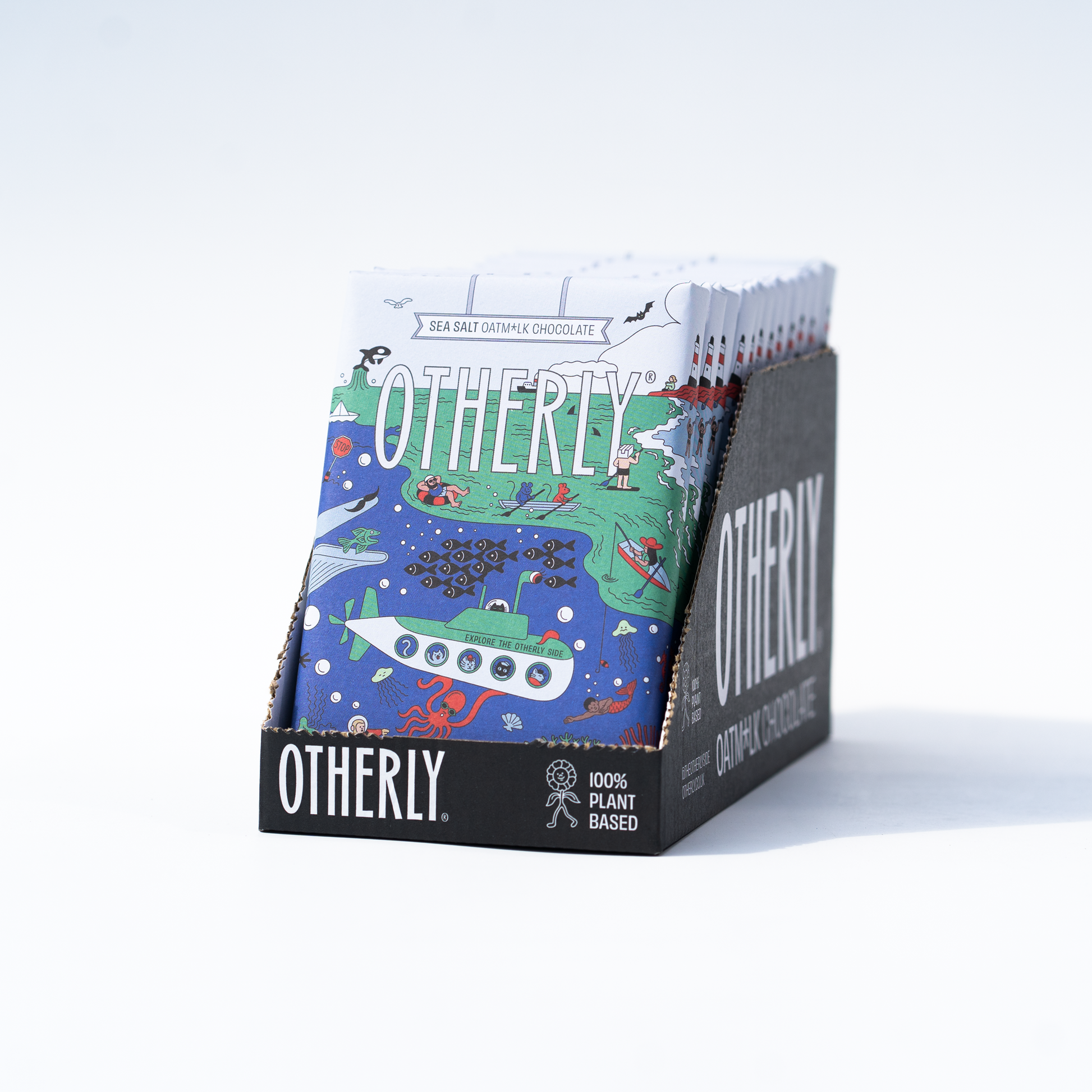 OTHERLY Sea Salt Oatm*lk is the perfect plant-based chocolate with 43% cacao content to enjoy delightful sea salt tones that accentuate the cereal flavours of natural oat powder and roasted cacao characteristic of fine flavour cocoa beans from Colombia.
