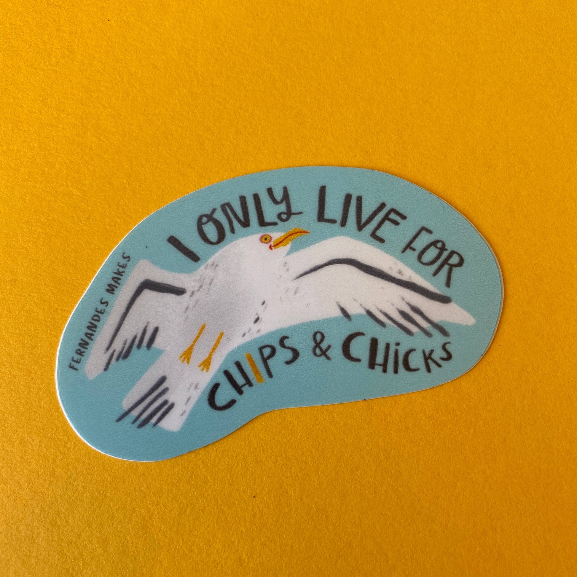 Seagull Vinyl Sticker - I only live for chips and chicks!