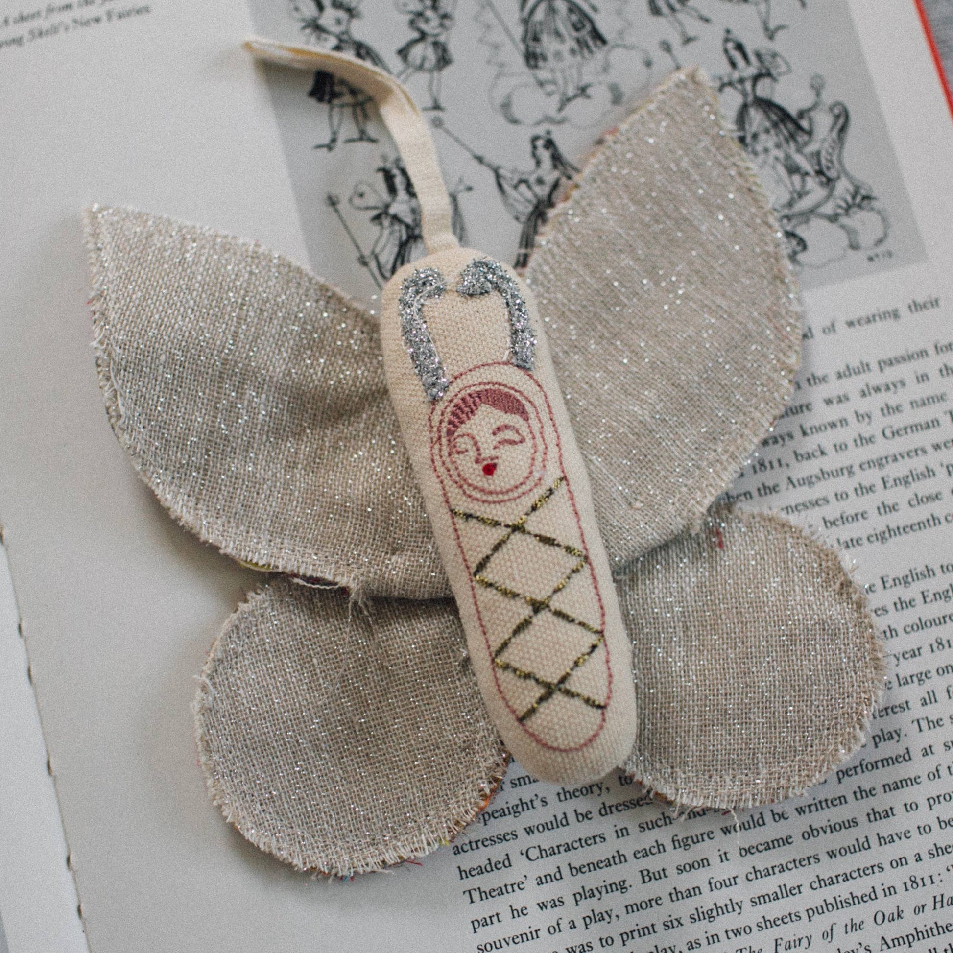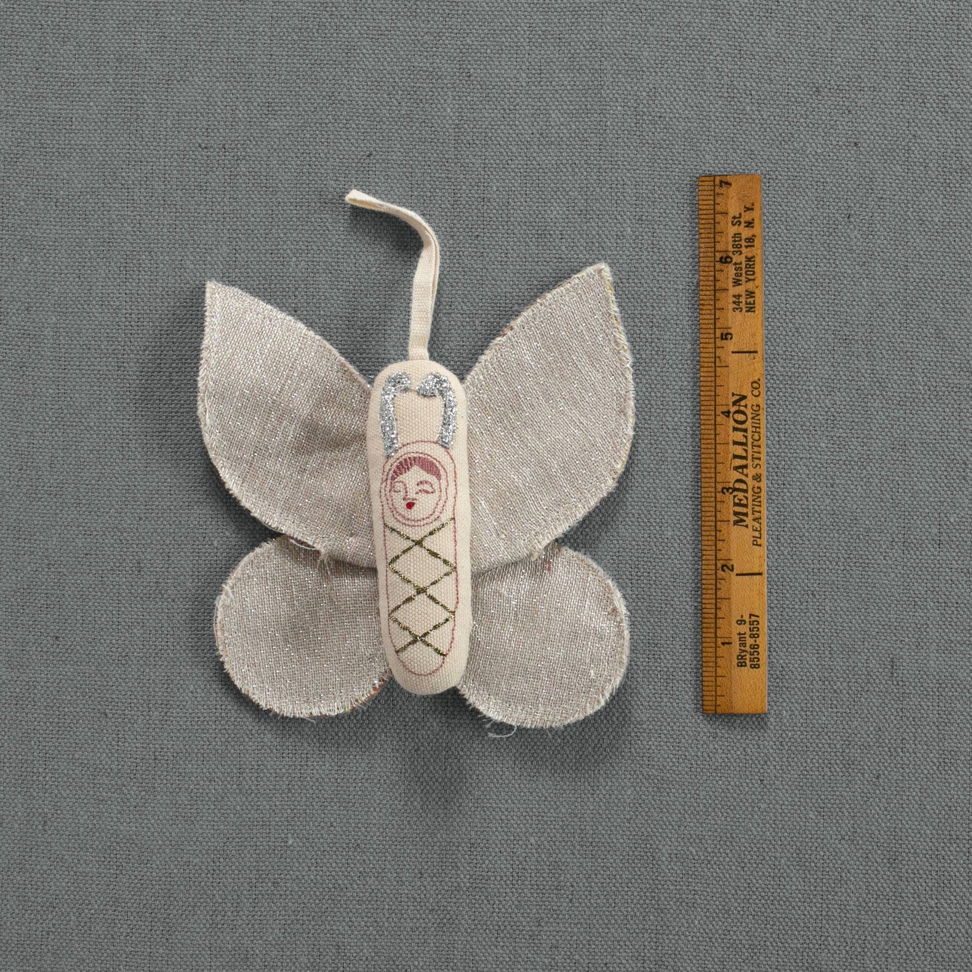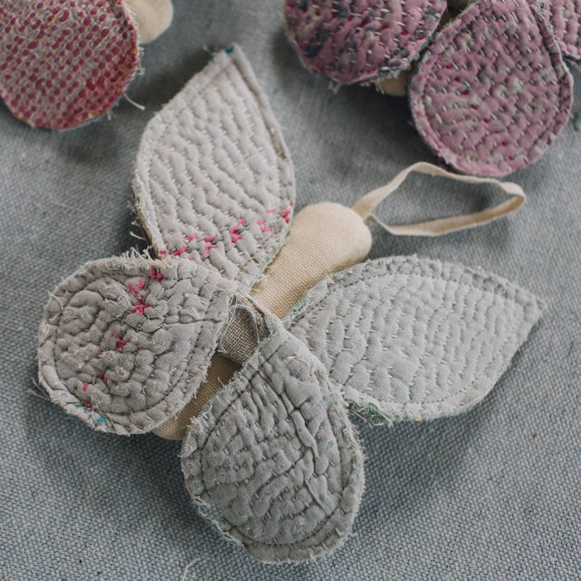 Sleepy Moth - Cotton Filled Ornament, Kantha Wings