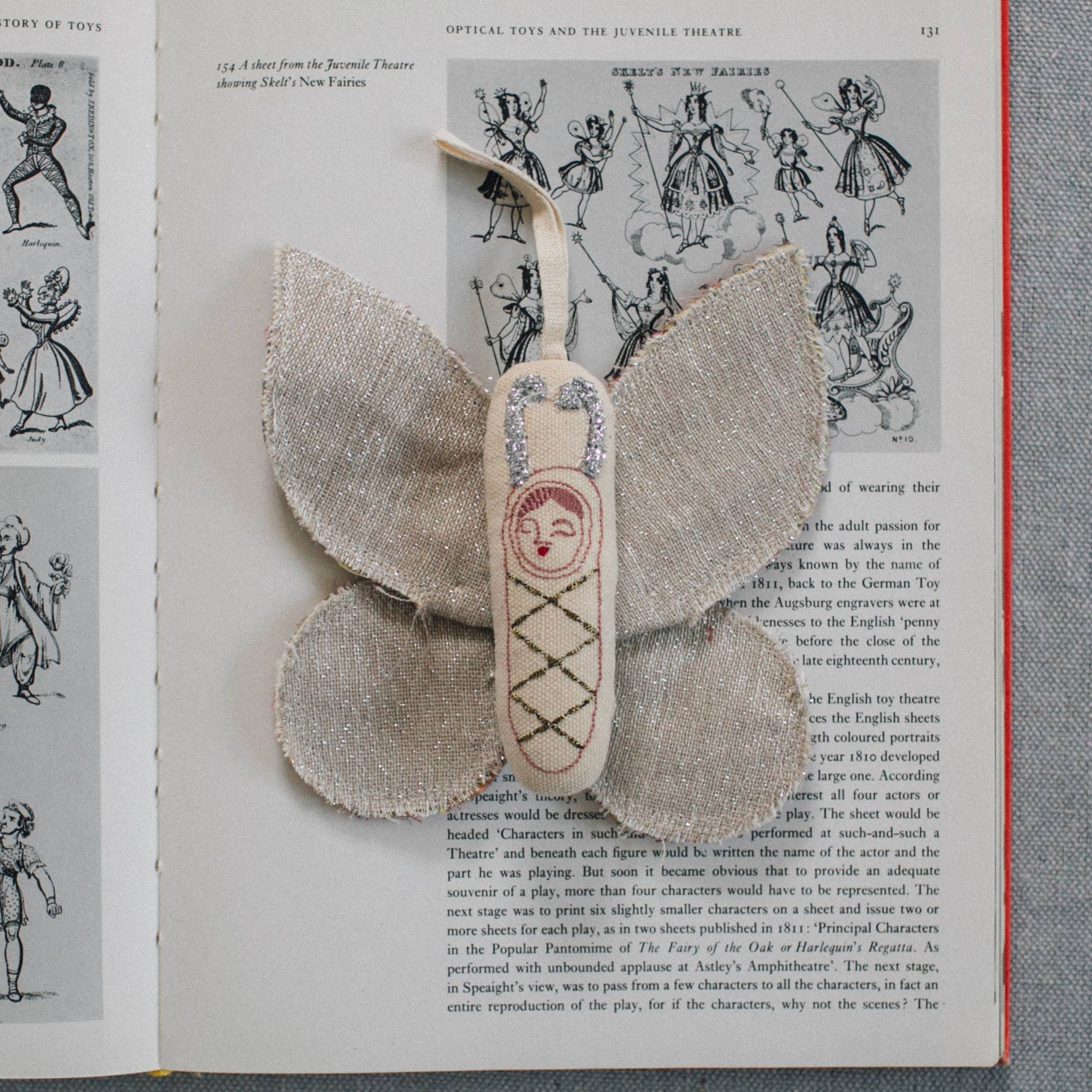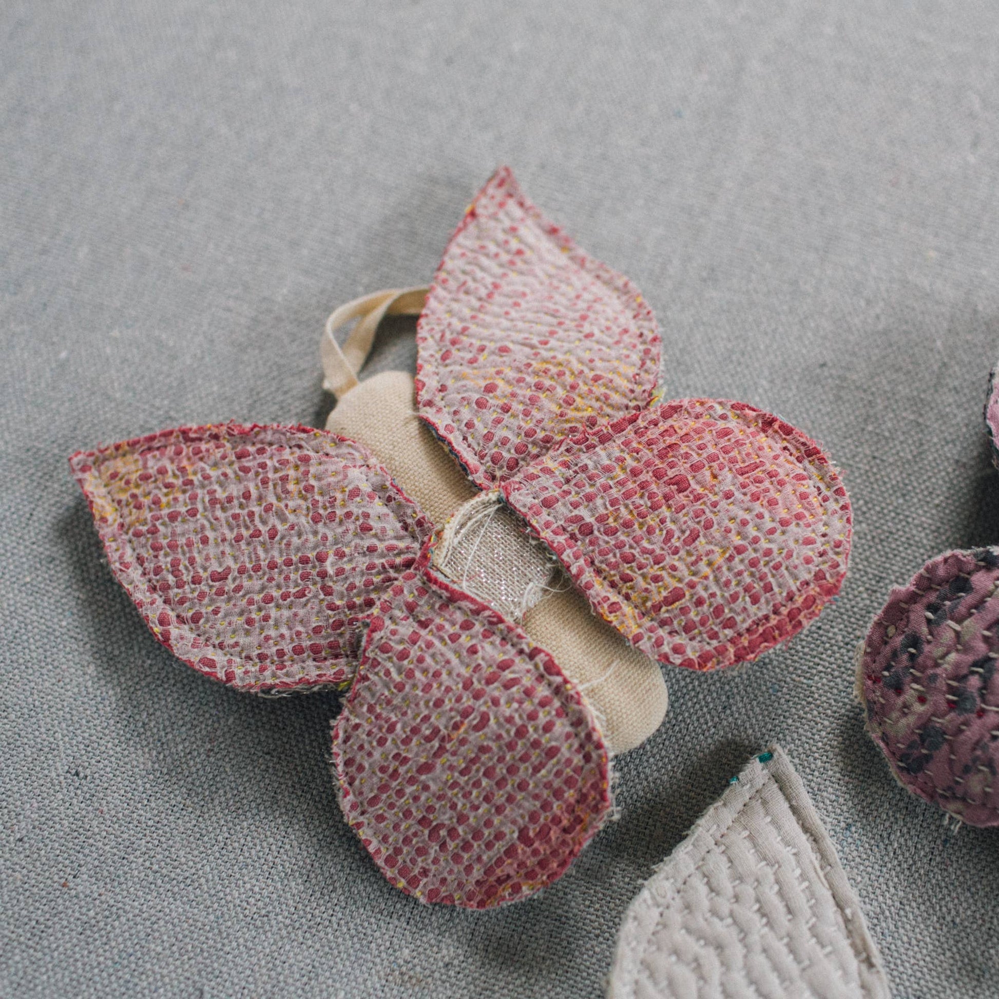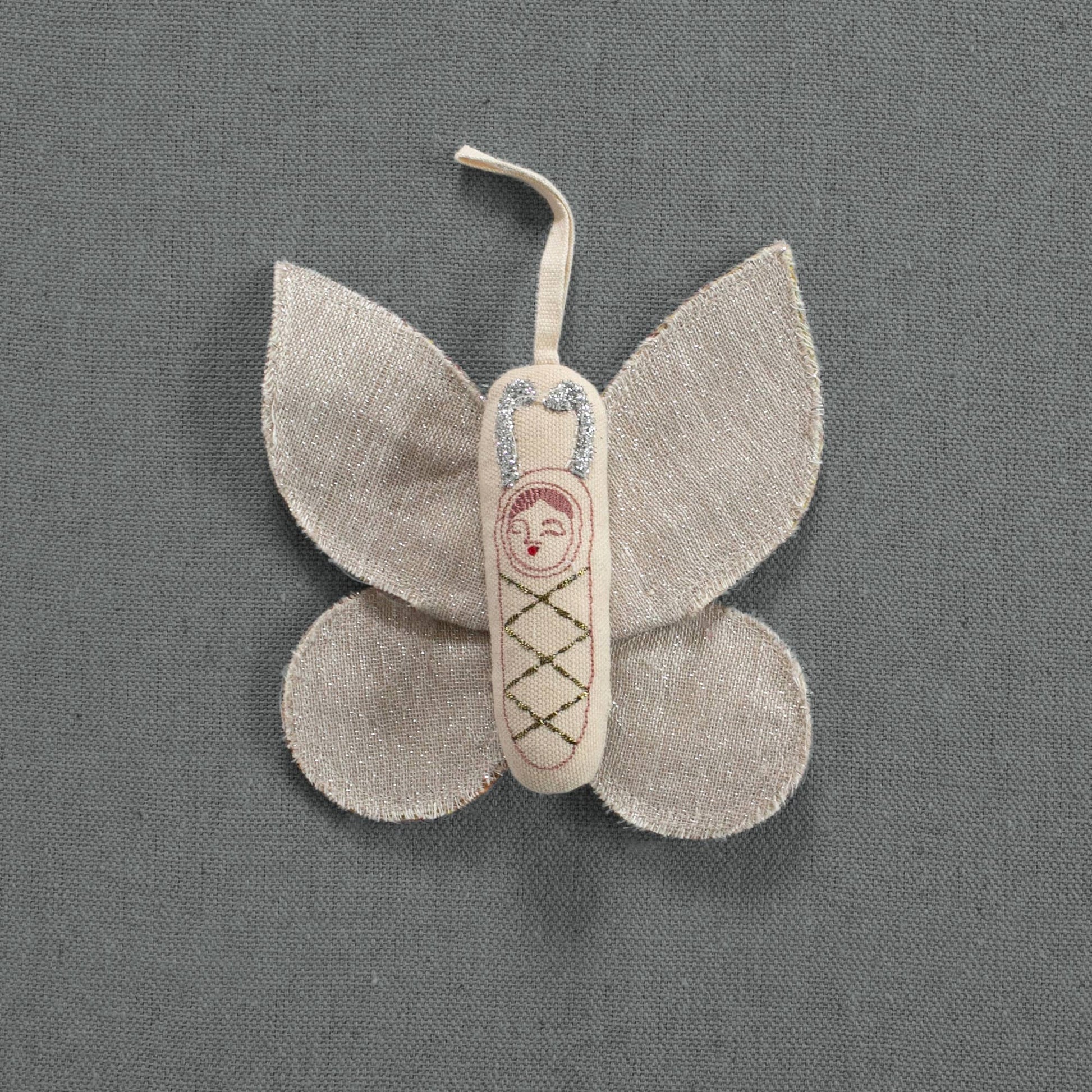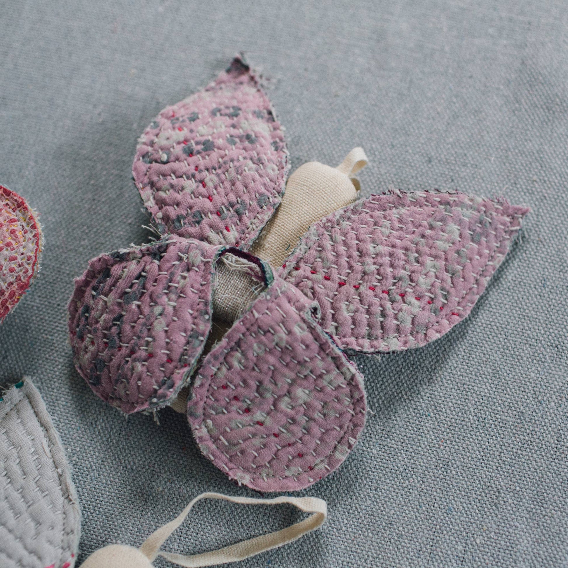 Sleepy Moth - Cotton Filled Ornament, Kantha Wings