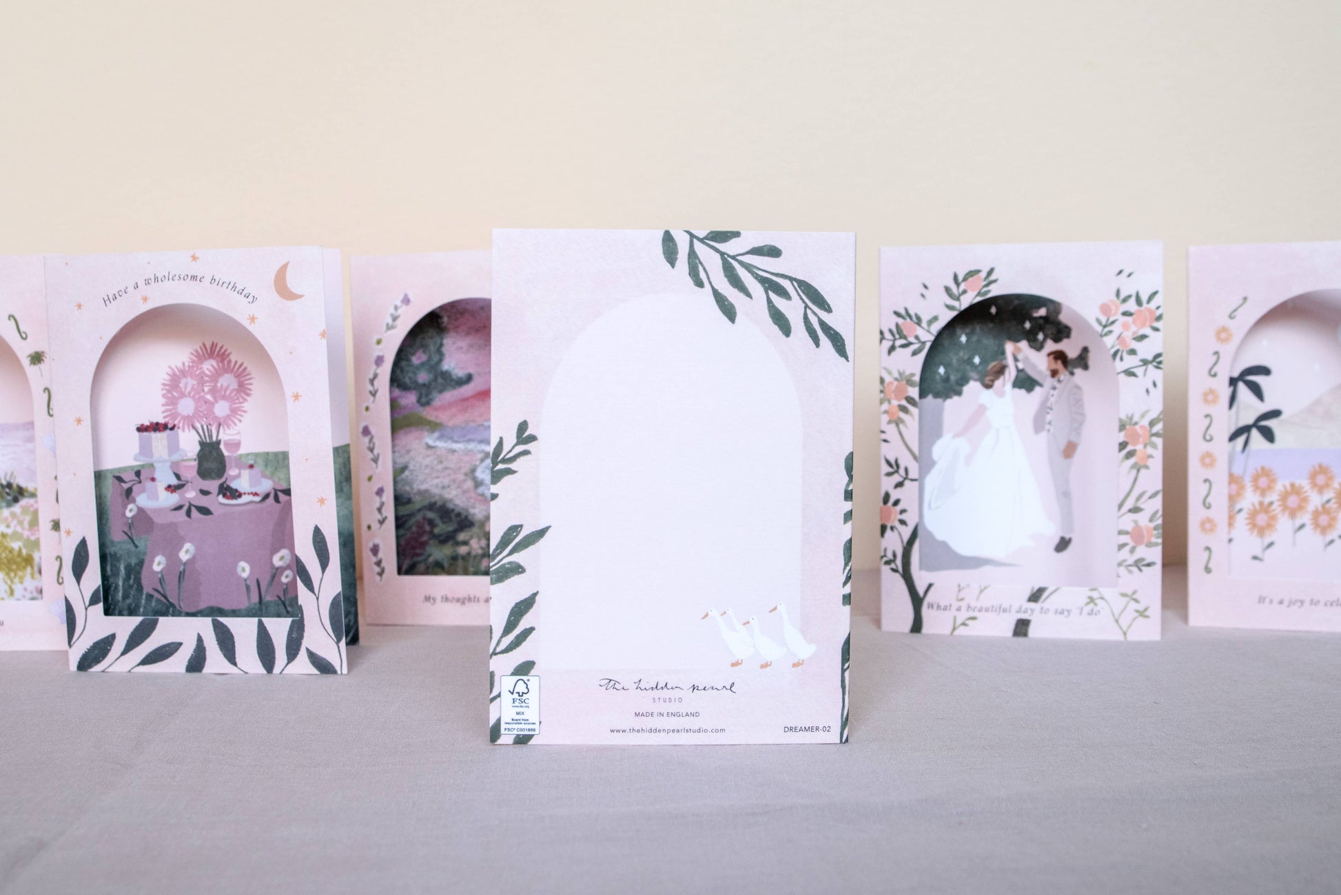 Wonderfully unique arch window greeting card printed on luxury FSC 'kind to the forest' card.