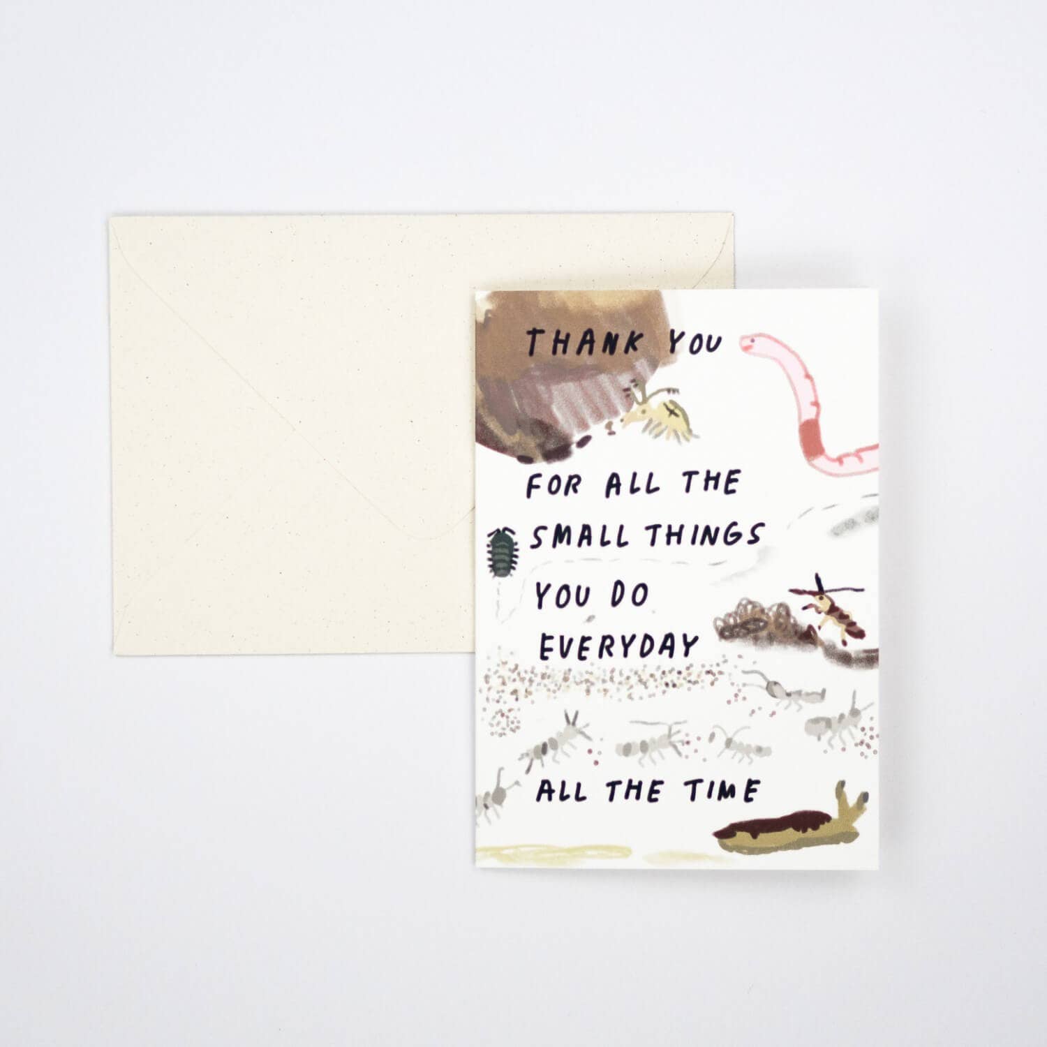Thank you for all the small things you do all the time, everyday. This design is sweet and funny. The perfect card to give to that hard-working under-appreciated person in your life to make them feel seen and loved.